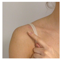 Bring your shoulders back and squeeze your shoulder blades together as shown in the picture. Do this with or without your sling on.